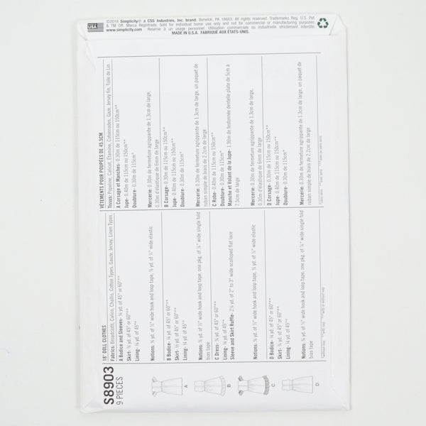 Simplicity S8903 18" Doll Clothes Sewing Pattern