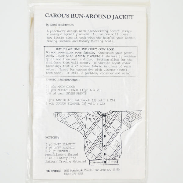 Fun Fabrics Carol's Run Around Jacket Sewing Pattern - Size 8-22