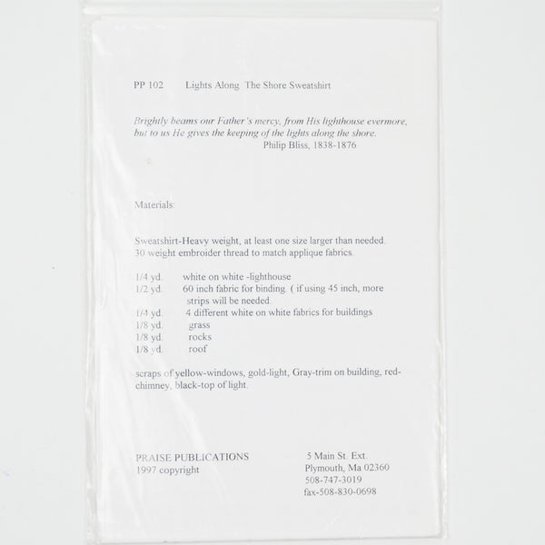 Praise Publications Lights Along the Shore Sweatshirt Sewing Pattern