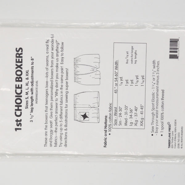 First Choice Boxers Sewing Pattern - Size S-XXL