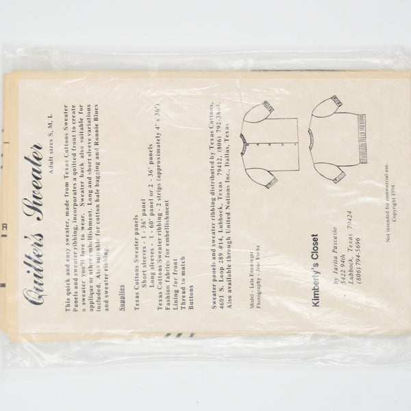 Kimberly's Closet Quilter's Sweater Sewing Pattern - Size S-L