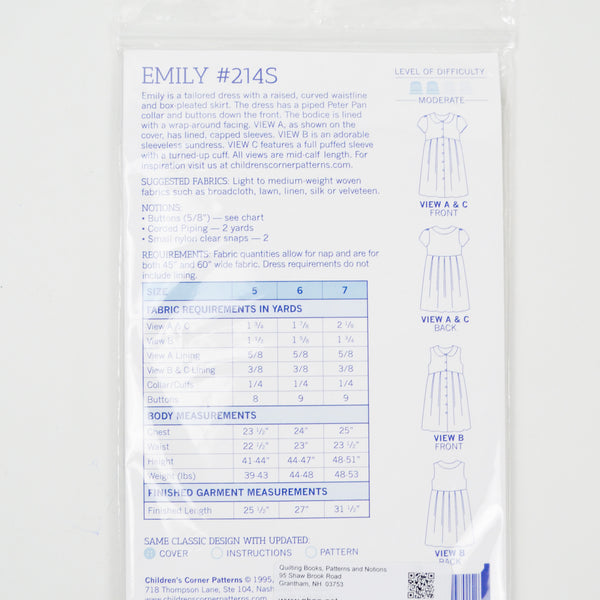 Children's Corner #214S Emily Sewing Pattern - Size 5-7