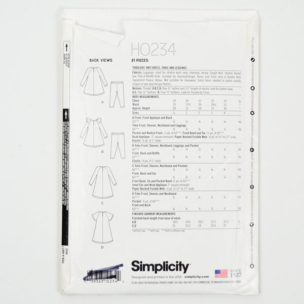 Ruby Jean's Closet H0234 Toddler's Knit Dress, Tunic and Leggings Sewing Pattern - Size A