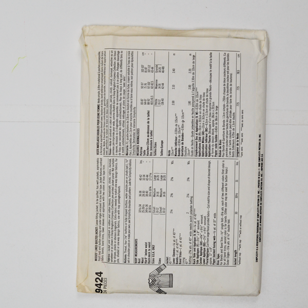 Simplicity 9424 Misses' Lined Quilted Jacket Sewing Pattern - Size A (All Sizes)
