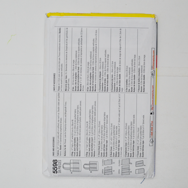 Simplicity 5598 Bags and Accessories Sewing Pattern