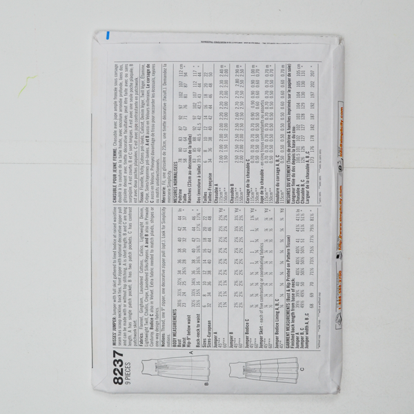 Simplicity 8237 Misses' Jumper Sewing Pattern - Size H (6-10)
