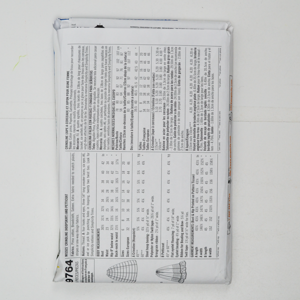 Simplicity 9764 Misses' Crinoline (Hoopskirt) and Petticoat Sewing Pattern - Size HH (6-12)