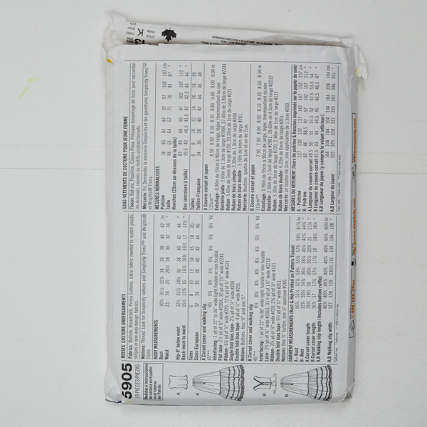 Simplicity 5905 Misses' Costume Undergarments Sewing Pattern - Size HH (6-12)