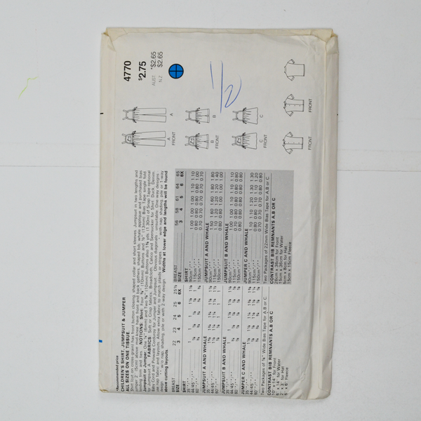 Butterick 4770 Children's Shirt, Jumpsuit & Jumper Sewing Pattern