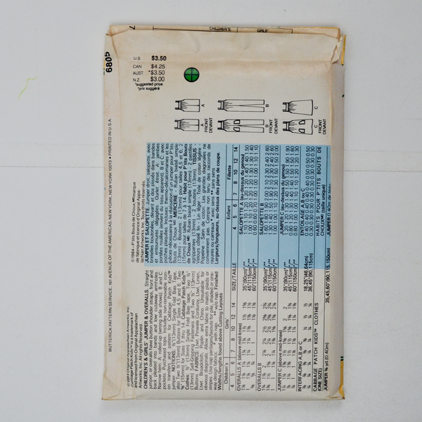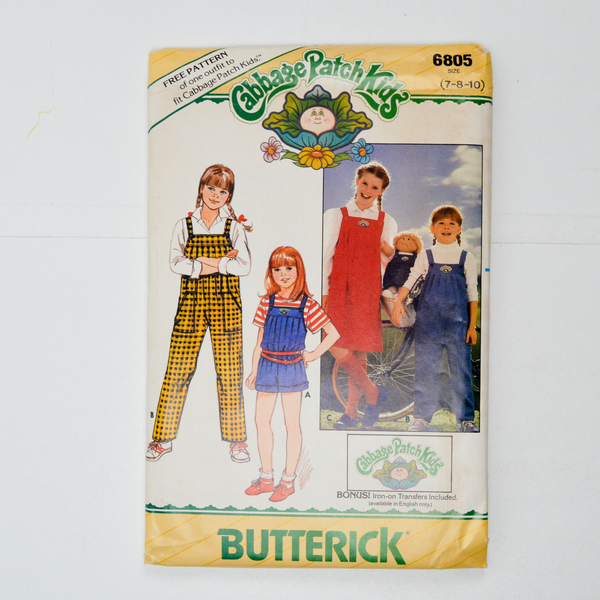 Butterick 6805 Cabbage Patch Kids Children's & Girls' Jumper & Overalls Sewing Pattern - Size 7-10