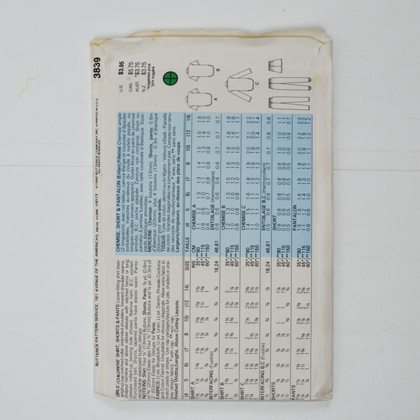 Butterick 3839 Girls'/Childrens' Shirt, Shorts & Pants Sewing Pattern - Size 12-14