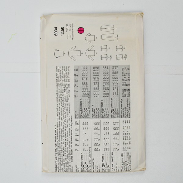 Butterick 6034 Children's Nightshirt, Top, Pants & Shorts Sewing Pattern - Size 5-6X