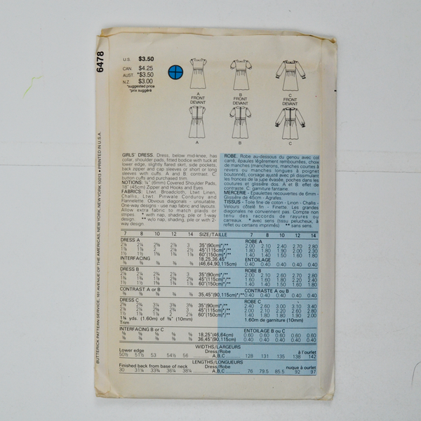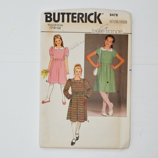 Butterick 6478 Girls' Dress Sewing Pattern - Size 7-10
