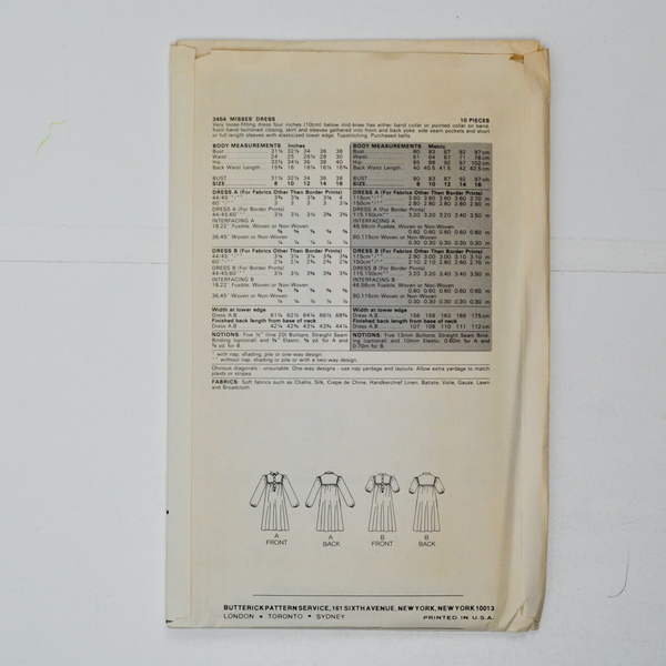 Butterick 3454 Misses' Dress Sewing Pattern - Size 10
