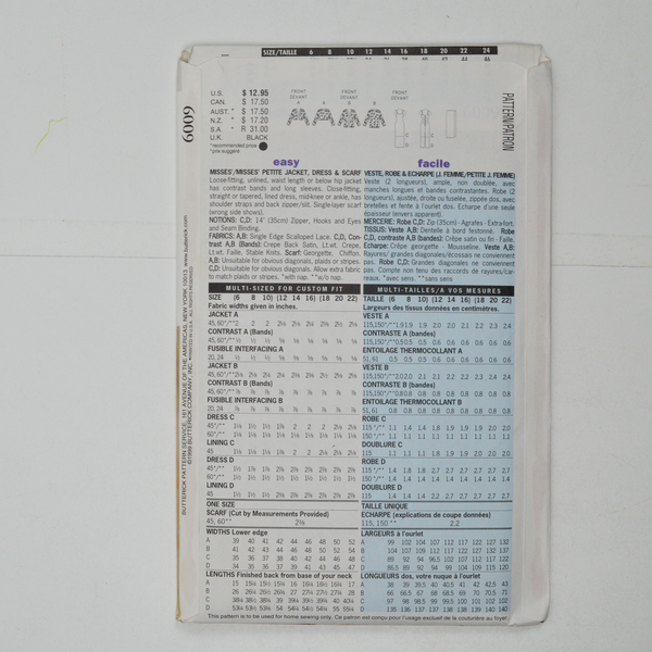 Butterick 6009 Misses'/Misses' Petite Jacket, Dress & Scarf Sewing Pattern - Size 12-16