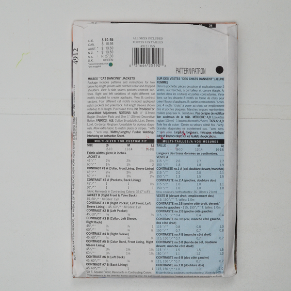 Butterick 4912 Misses' "Cat Dancing" Jackets Sewing Pattern