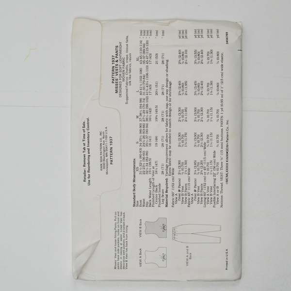 Kwik Sew 1937 Misses' Vests & Pants Sewing Pattern - Size XS-XL