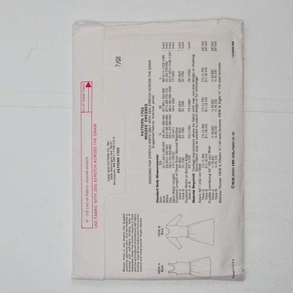 Kwik Sew 1703 Misses' Dresses Sewing Pattern - Size XS-L