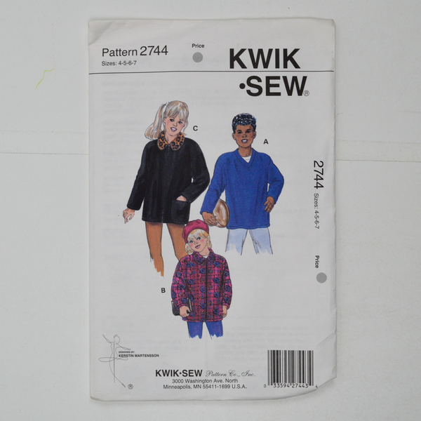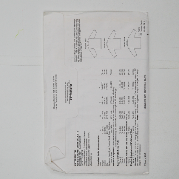 Kwik Sew 2744 Girls' & Boys' Shirt Jackets Sewing Pattern - Size 4-7