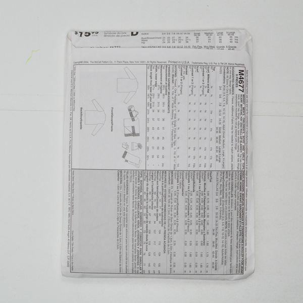 McCall's 2040 Misses' Nightgown or Top and Panties Sewing Pattern - Size 6-10
