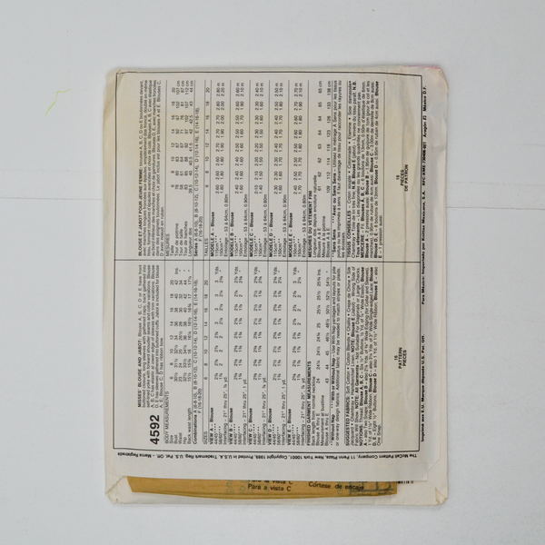 McCall's 4592 Misses' Blouse and Jabot Sewing Pattern - Size B (8-12)