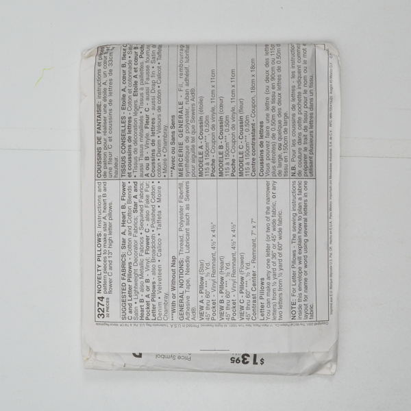 McCall's 3274 Novelty Pillows Sewing Pattern