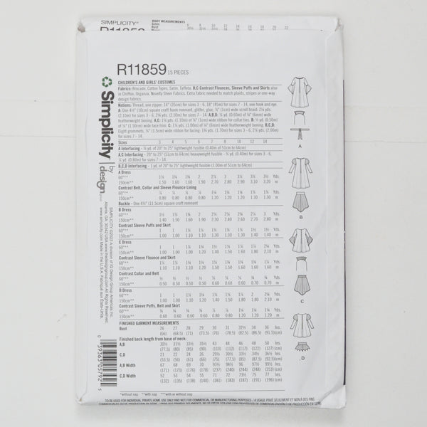 Simplicity R11859 Children's and Girls' Costumes Sewing Pattern - Size K5 (7-14)