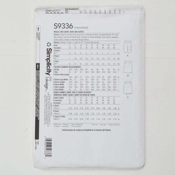Simplicity S9336 Misses' Knit Skort, Skirt and Shorts Sewing Pattern - Multiple Sizes Available