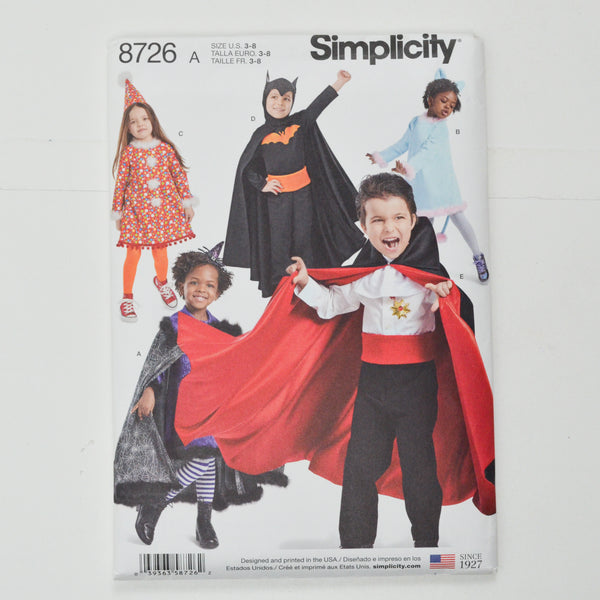 Simplicity 8726 Child's Costumes Sewing Pattern - Size A (3-8)