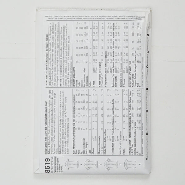 Simplicity 8619 Child's Dress and Tunic Sewing Pattern - Size A (3-8)