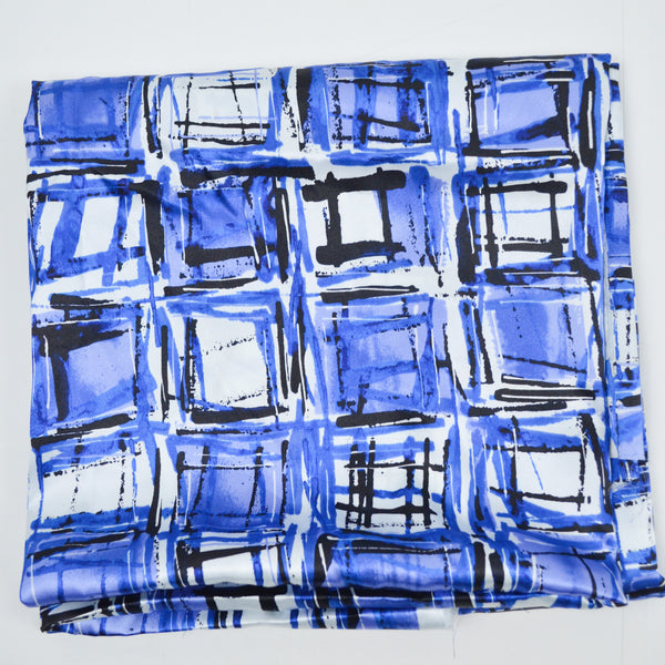 Blue, Black + White Artistic Geometric Grid Print Satin Woven Fabric - 58" x 80"