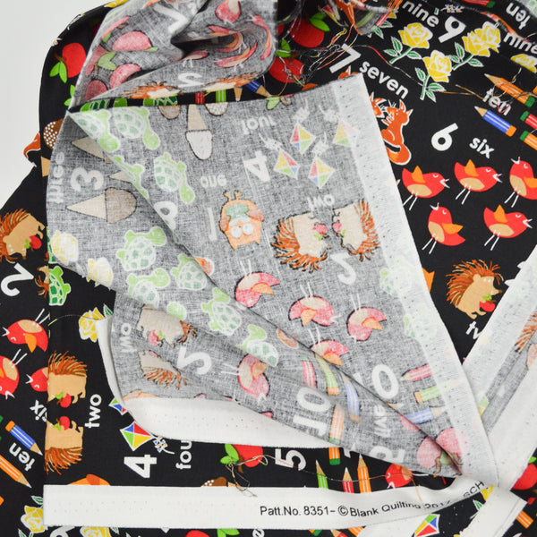 Black + Colorful Counting Illustration Print Quilting Weight Woven Fabric - 40" x 144"
