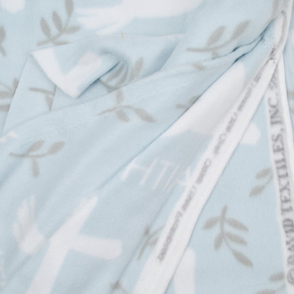 Light Blue + White Faith Dove Print Fleece Fabric - 50" x 64"