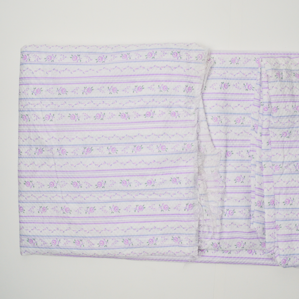 Lavender + White Dainty Floral Stripe Textured Woven Fabric - 46" x 148"