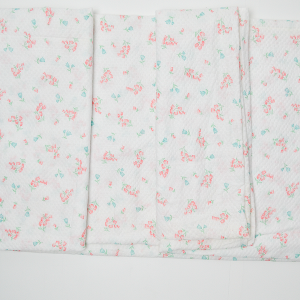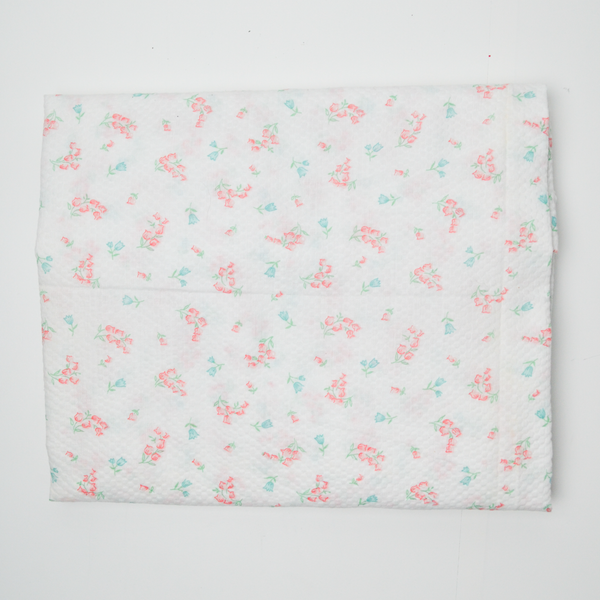 White, Pink + Green Dainty Floral Print Textured Woven Fabric - 46" x 108"