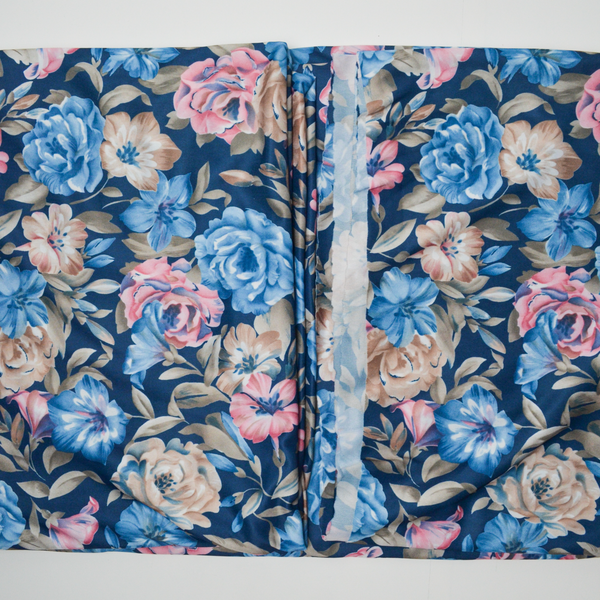 Blue, Beige + Pink Digital Floral Print Polyester Stretch Knit Fabric - 64" x 180"