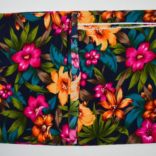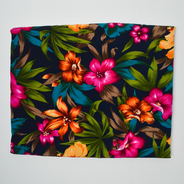 Black, Pink, Orange + Green Tropical Floral Print Drapey Woven Fabric - 44" x 144"
