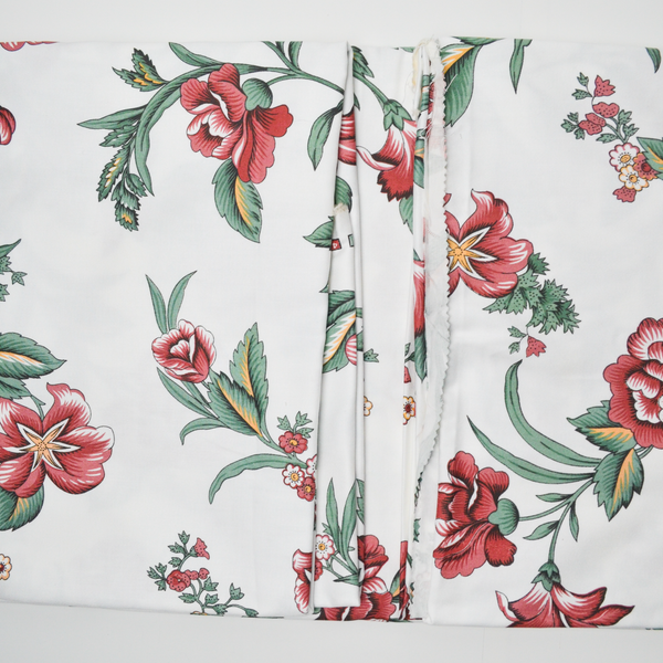 White, Red + Green Floral Print Woven Drapery Fabric - 56" x 180"