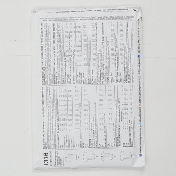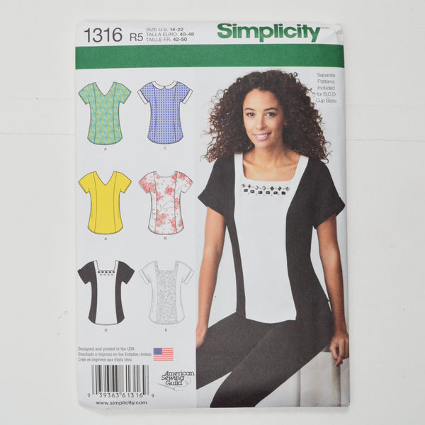 Simplicity 1316 Misses' Top Sewing Pattern - Size R5 (14-22)