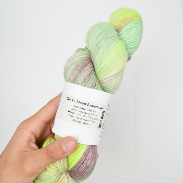 Bright Green + Muted Purple The Golden Purls Superwash 4 ply DK Merino Wool Yarn - 5 Skeins