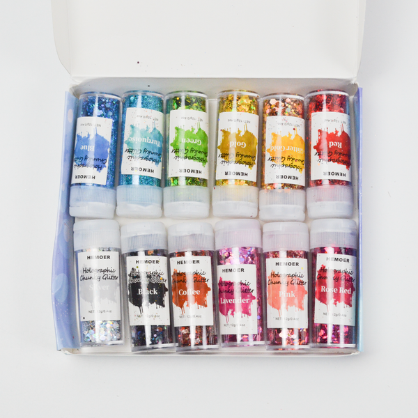 Hemoer Rainbow Ultra-Brilliant Glitter Powder Set - 12 Colors