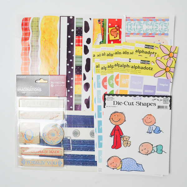 Alphabet, Baby + Family Scrapbooking Embellishment + Sticker Bundle