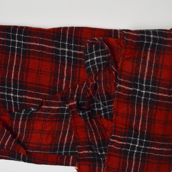 Red, Black + White Plaid Woolly Crepe Woven Fabric - 35" x 40"