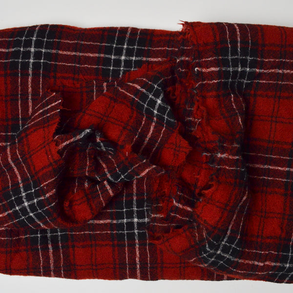 Red, Black + White Plaid Woolly Crepe Woven Fabric - 48" x 56"