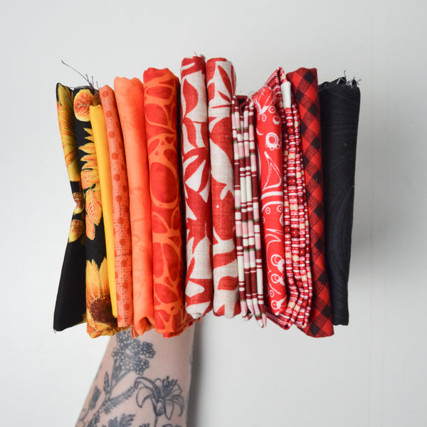 Red, Black + Orange Patterned Quilting Weight Woven Fabric Bundle