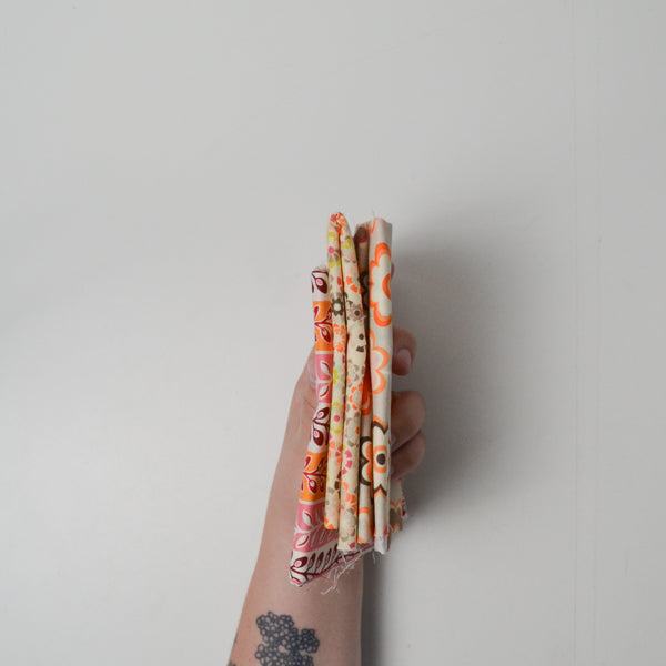 Orange, Gray + Pink Floral Print Quilting Weight Woven Fabric Bundle