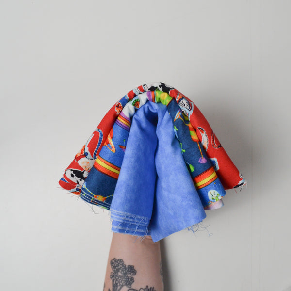 Blue + Red Dogs + Aliens Illustration Print Cut Quilting Fabric Bundle - 10" x 10" Pieces