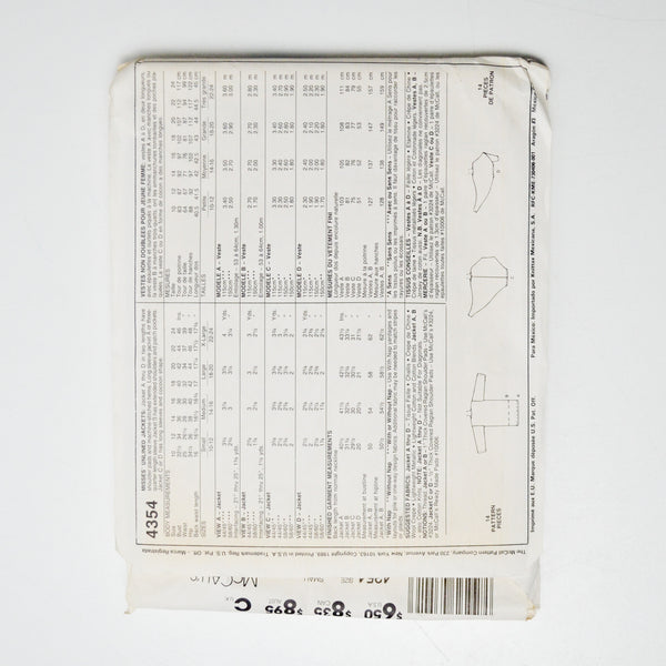 McCall's 4354 Jacket Sewing Pattern - Size Small