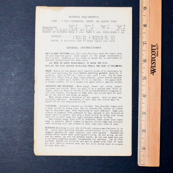 Knit O Graf No. 925 Kitten Sweater Knitting Pattern - Size 2-8