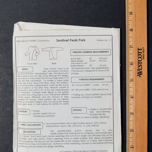 Park Bench Pattern Co. Sentinel Peak Park Sewing Pattern - All Sizes Included